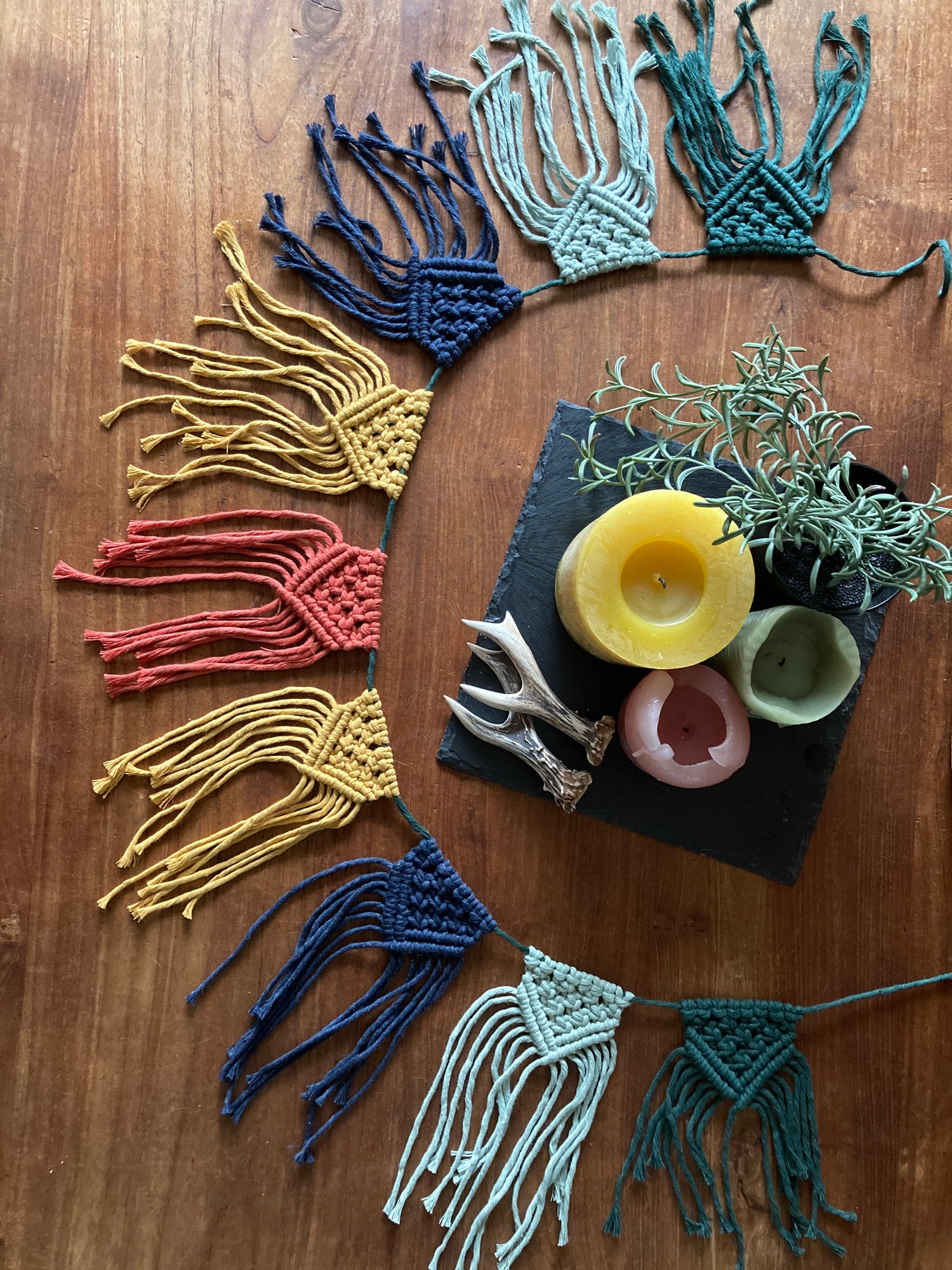 Breng de warmte van de Indian Summer in huis met een handgemaakte macramé vlaggenlijn. Tijdens deze workshop stel je je eigen kleurencombinatie samen en knoop je stap voor stap je unieke creatie (lijn met 9 vlaggetjes).